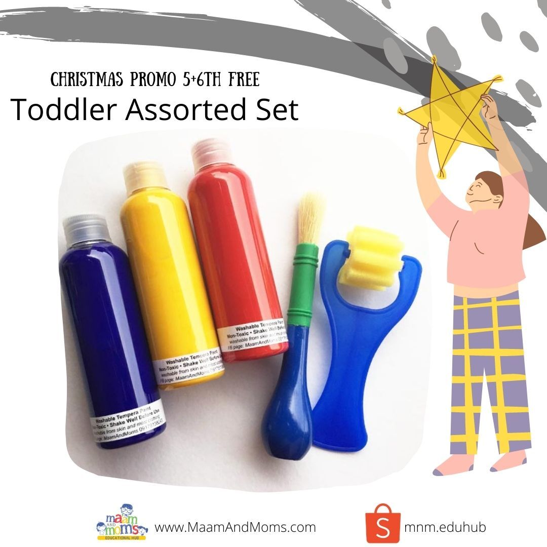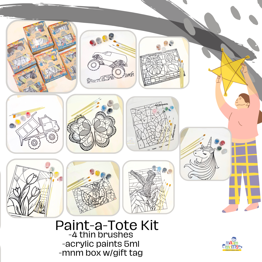 sets | 5 color set, toddler assorted set, Paint-a-Tote kit, trial set, painter set, single basic set, single toddler set, 5 color set (metallic and neon) |